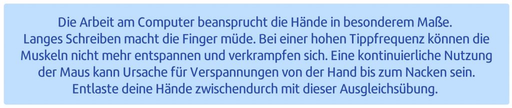 Wiederhole den Ablauf 2- bis 3mal abwechselnd mit der einen und der anderen Hand oder mache sie mit beiden Händen gleichzeitig.