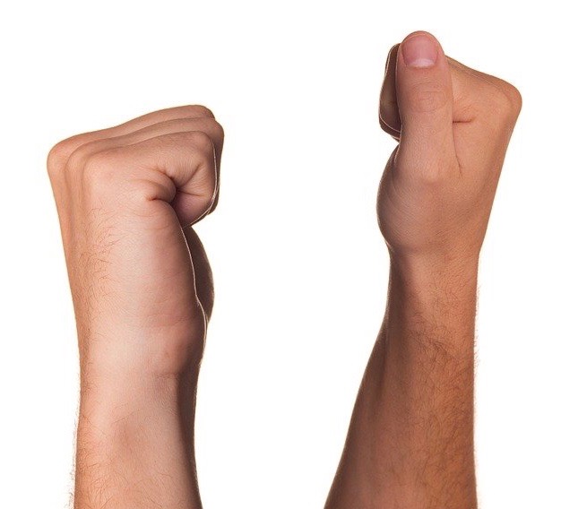 Balle eine Hand fest zur Faust. Halte die Spannung so fest wie möglich, ohne dass du Schmerzen verspürst.